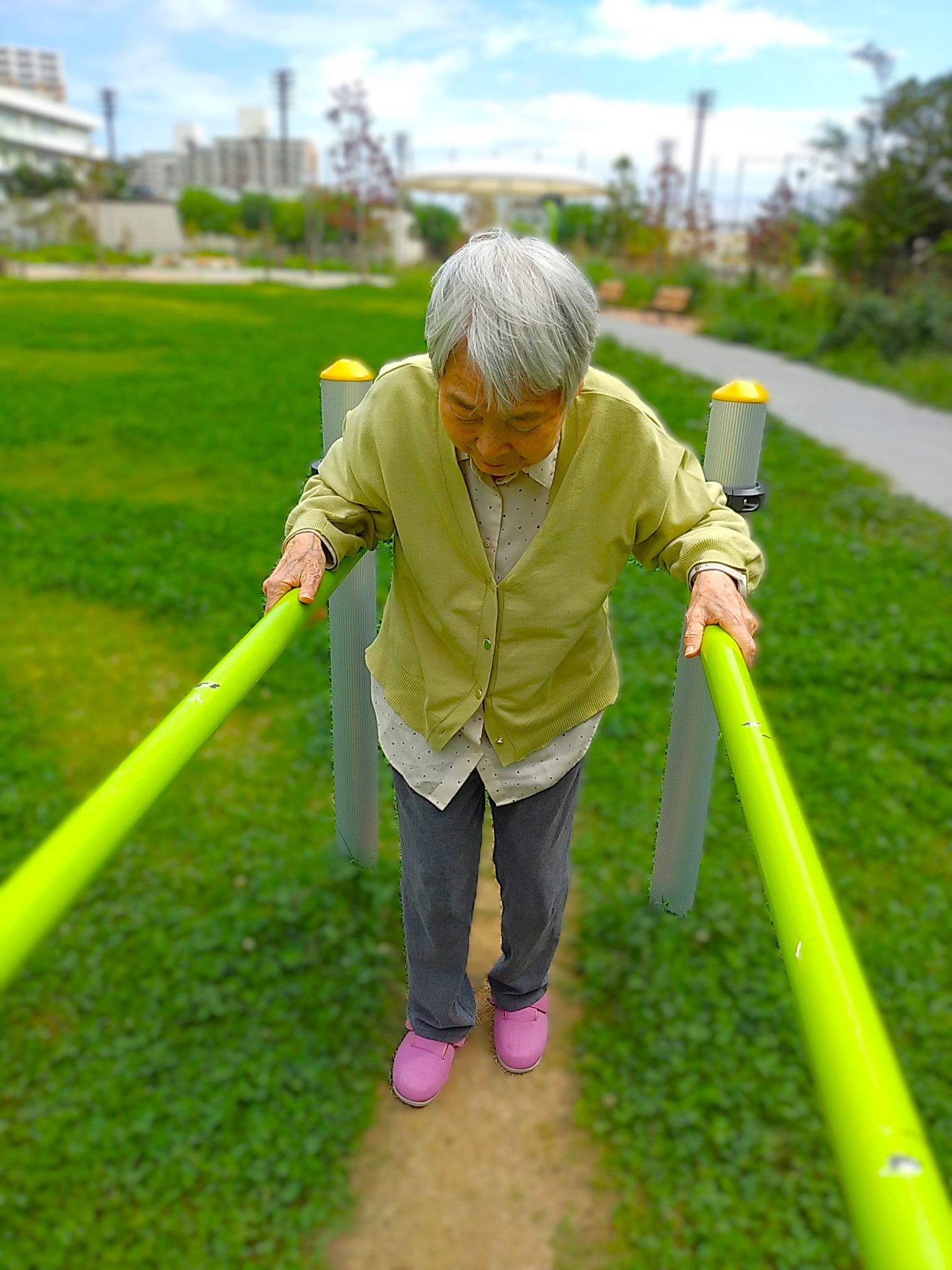 遊具をつかって歩く練習をされた方も